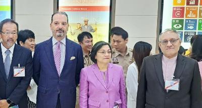 آقای ماروت مکلوی (Marut Mekloy) و خانم مالی مانکونگ (Malee Mankong) رئیس و قائم مقام انجمن تجاری مسلمانان تایلند (TMTA)، روز چهارشنبه 9 مهر 1404 با آقای ناصرالدین حیدری سفیر محترم جمهوری اسلامی ایران در تایلند، دیدار و گفتگو نمودند. در این ملاقات، طرفین در خصوص راههای توسعه مناسبات تجاری دو کشور به ویژه در زمینه محصولات حلال و اهمیت حضور متقابل در نمایشگاه‌های دو کشور بحث و تبادل نظر کردند.